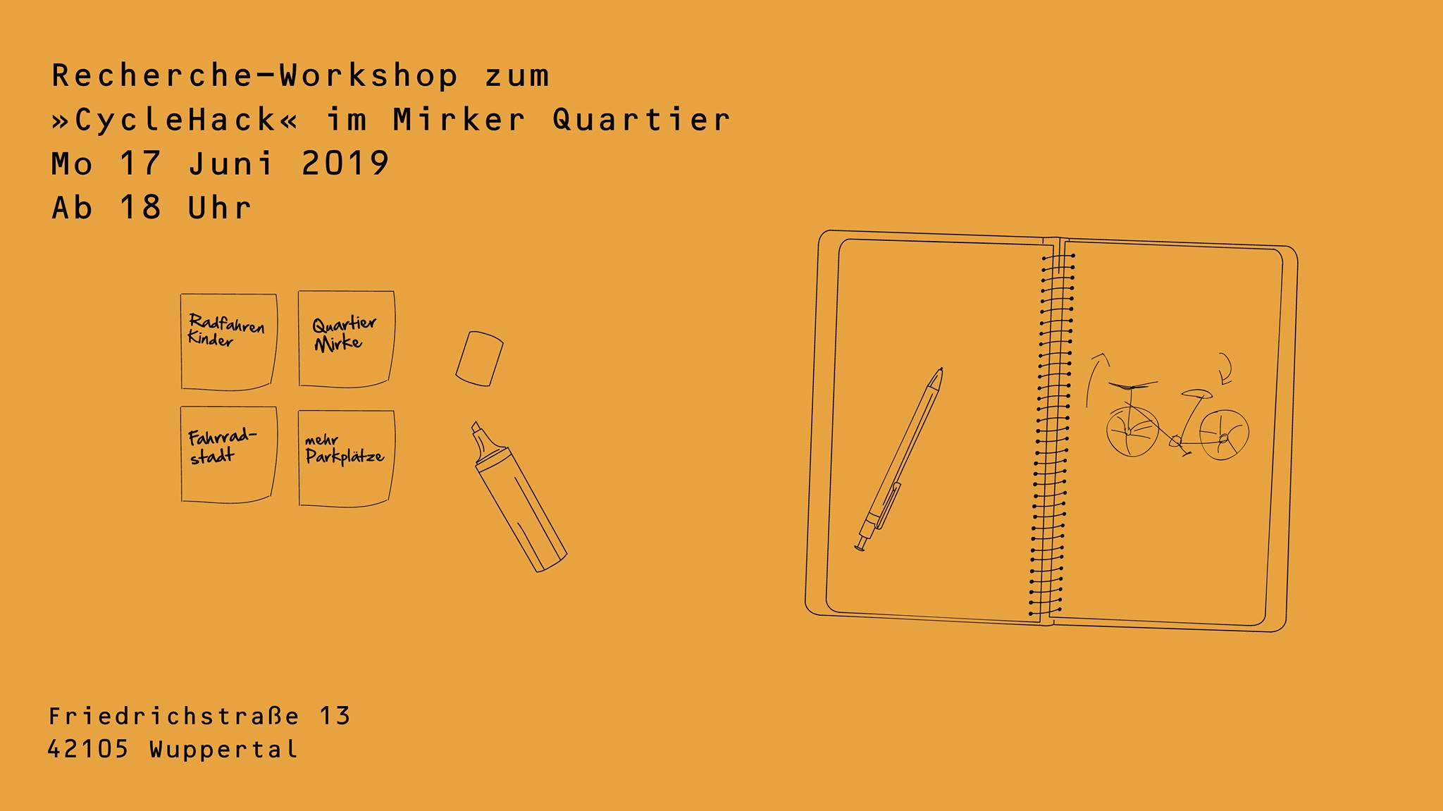 WE ARE KISOK lädt ein: Das WE ARE KIOSK Kollektiv möchte mit euch zusammen im Juli einen kreativen Ideen-Workshop, unter dem Arbeitstitel „CycleHack“, organisieren. Unser Ziel ist es, das Thema der Fahrrad-Mobilität im Mirker Quartier und der Nordstadt zu fördern und Wuppertal auf dem Weg zur Fahrradstadt zu unterstützen. Recherche-Abend […]